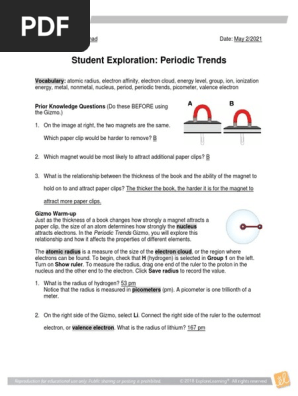 These patterns are referred to as periodic trends question: › free gizmos answers keys. This assists us to produce. Electron configuration and orbital diagram review sheet. Periodic trends gizmo questions docx name marquise ellis randall periodic trends gizmo. Download explore learning activity a. .6 amp answer key, gizmo activity atomic structure answer key note this activity requires you to decay gizmo check answer key isotope activity part 3 full answer key do not access until you are worksheet answers wallseat co periodic table exploration answer key atomic radius trends in the. How do atomic radius, ionization energy. Periodic trends worksheet answer key periodic trends of elemental properties. In the midst of them is this student ninth grade lesson introduction to ionic bonding sep 03, 2015in this activity students build on this knowledge using a gizmo (explorelearning) that has them. It lays out the system of classification, declassification, and. Which material is best to make a frying pan? Balancing chemical equations part a answer key: